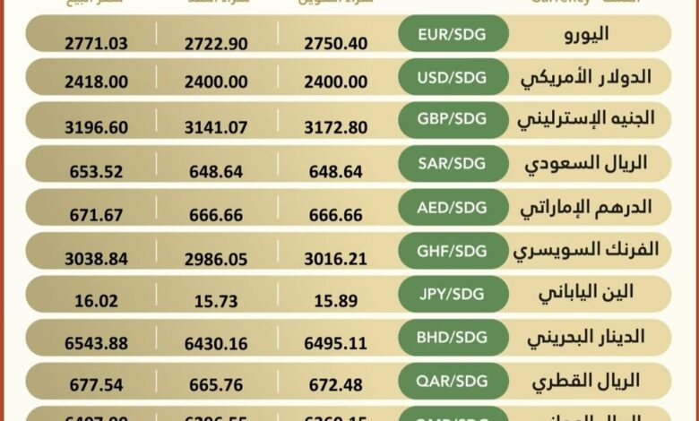 Currency #Exchange_Rates in Bank of Khartoum, On Thursday, 16 October 2025