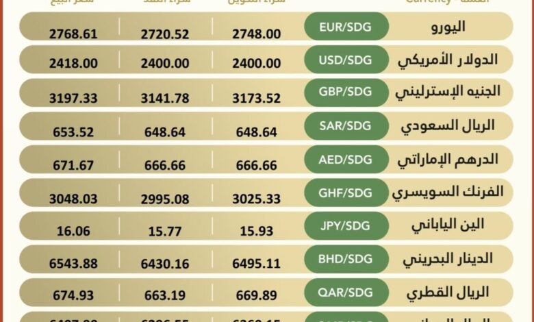 Currency #Exchange_Rates in Bank of Khartoum, On Saturday, 18 October 2025