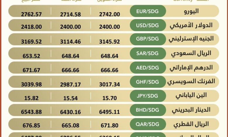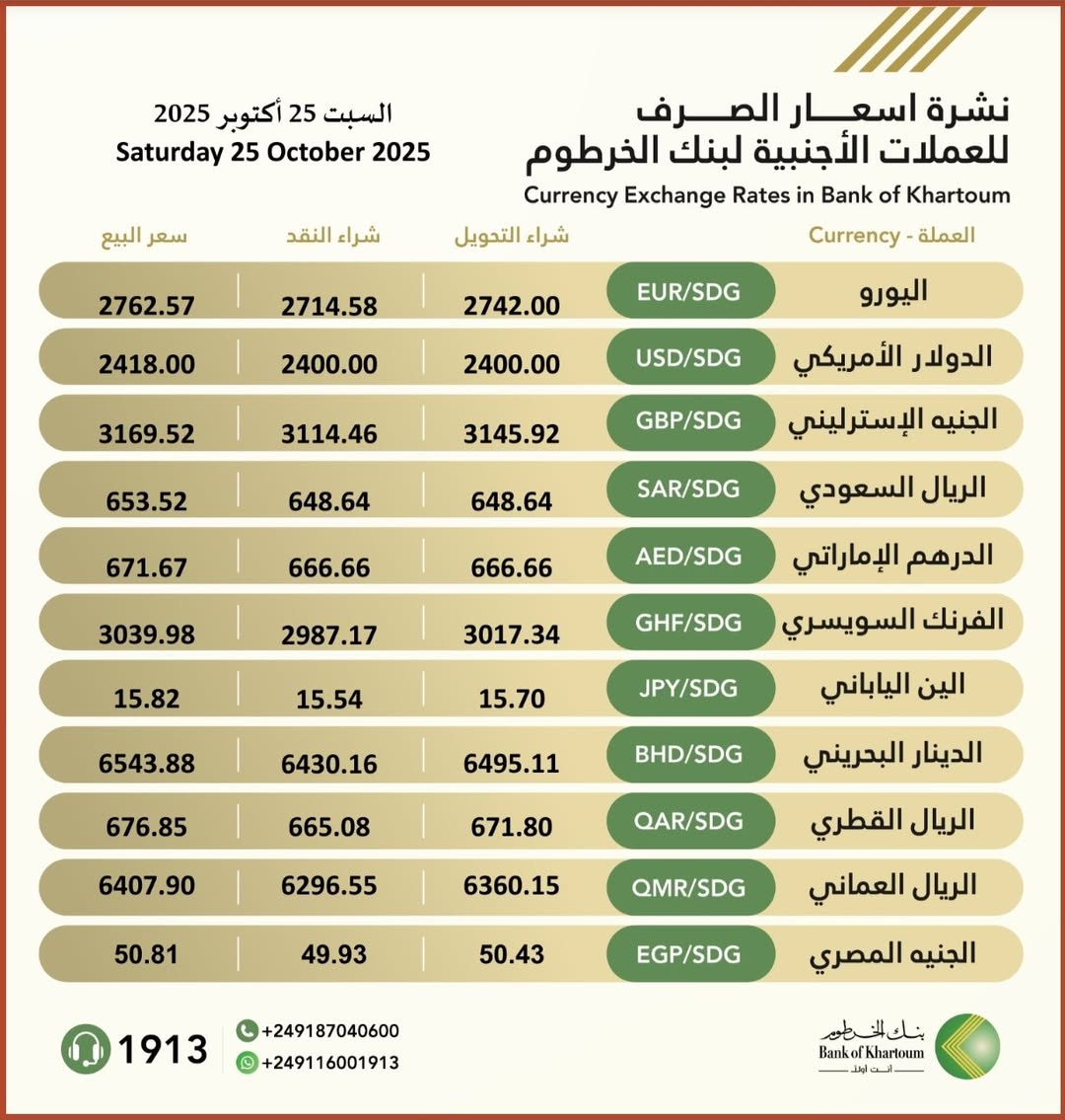 Currency #Exchange_Rates in Bank of Khartoum, On Saturday, 25 October 2025