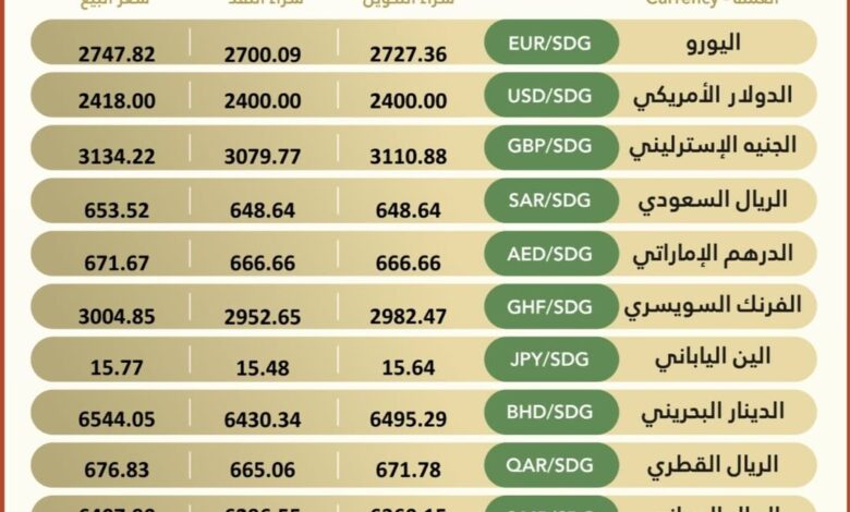 Currency #Exchange_Rates in Bank of Khartoum, On Sunday, 9 November 2025