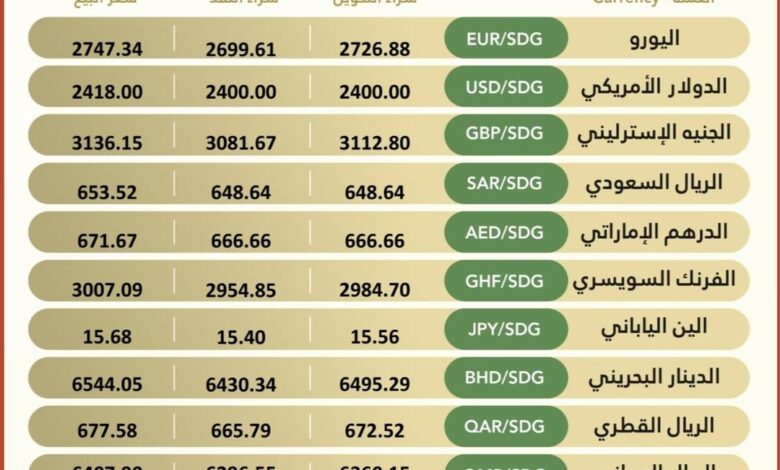 Currency #Exchange_Rates in Bank of Khartoum, On Tuesday, 11 November 2025