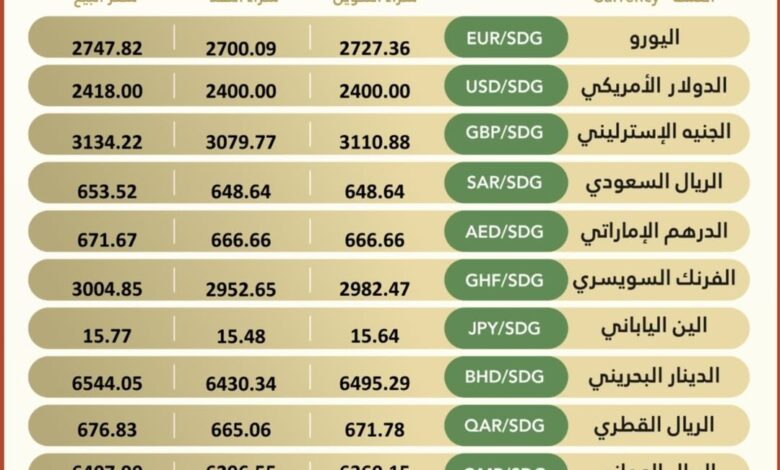 Currency #Exchange_Rates in Bank of Khartoum, On Saturday, 8 November 2025
