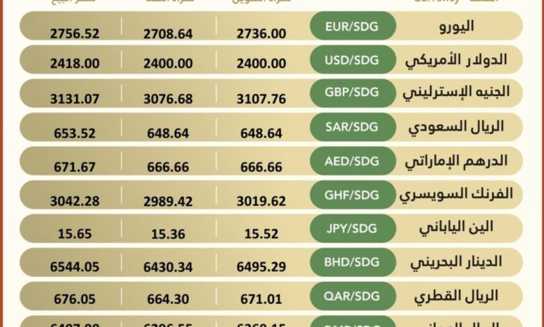 Currency #Exchange_Rates in Bank of Khartoum, On Monday, 17 November 2025