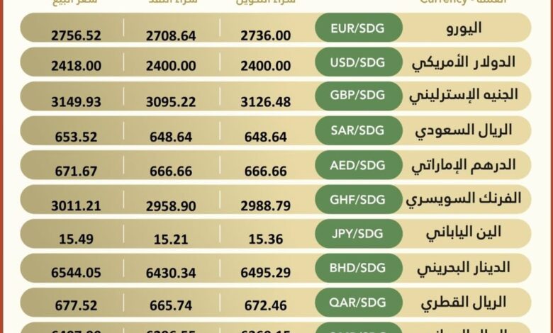 Currency #Exchange_Rates in Bank of Khartoum, On Saturday, 29 November 2025