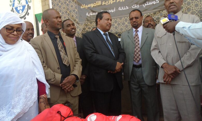 دشن الدكتور عبد الحميد موسى كاشا والى #ولاية_النيل_الابيض بمبانى امانة الحكومة بربك حملة توزيع الناموسيات المشبعة المقدمة من بنك الخرطوم ضمن برنامج المسئولية الاجتماعية للبنك وذلك بحضور الاستاذ اسماعيل نواى السيد رئيس المجلس التشريعى والاستاذ طارق عمر بريقع وزير الصحة وعدد من اعضاء حكومة الولاية والاستاذ الصادق عيسى محمد مدير فروع ولاية النيل الابيض وعدد من موظفي البنك و منظمات المجتمع المدنى المختلفة هذا واشار الوالى للدور الرائد لبنك الخرطوم فى مجال العمل المصرفى مشيدا بمبادراته الكبيرة فى مجال المسئولية الاجتماعية ودعمه لبرامج الصحة والتعليم بالولاية وقال سيادته ان توزيع الناموسيات المشبعة يسهم فى دحر الملاريا ويدعم عمل وزارة الصحة فى هذا الاتجاه متمنيا ان ينعكس هذا العمل فى نماء وتطور ورقى البنك حتى يدفع بعجلة التنمية والاستقرار بالولاية الى ذلك اشار الاستاذ طارق عمر بريقع وزير الصحة للشراكة الكبيرة بين بنك الخرطوم و وزارته وقال ان الحملة هى الثانية التى ينفذها البنك فى مجال توزيع الناموسيات اسهاما فى دحر الملاريا مثمنا هذه المبادرات فى مجال المسئولية الاجتماعية ودعا بريقع لمواصلة هذه المبادرة فى دعم الصحة والتعليم بالولاية من جانبه قال الاستاذ الصادق عيسى محمد مدير فروع قطاع النيل الابيض ان تدشين توزيع الناموسيات يأتى استشعارا من البنك للمسئولية الاجتماعية حيث يهدف الي توزيع ثلاثة الف ناموسية بالولاية وهى جزء من ثلاثين الف ناموسية قدمها البنك للولايات المختلفة مؤكدا مواصلة البنك لهذا المسئولية فى دعم الصحة والتعليم واستمرار التواصل مع حكومة الولاية وقطاعات المجتمع المختلفة لتنفيذ مشروعات فى المجالات الخدمية المختلفة