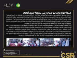 في اطار مشاريع المسؤولية المجتمعية دشن بنك الخرطوم حملة توزيع الناموسيات في محلية جبل اولياء بحضور معتمد #محلية_جبل_اولياء اللواء جلال الدين الشيخ الطيب و مدير التسويق و المنتجات بالبنك السيد/ خالد محمد زين و ذلك في يوم الثلاثاء الموافق 19 اكتوبر لطلاب وطالبات مدارس مرحلة الاساس و ذلك بحضور القيادات الشعبية والتنفيذية و مدراء المدارس المستهدفة لهذا البرنامج و بالشراكة إدارة تعزيز الصحة بالمحلية و بالتنسيق مع فرع البنك بالكلاكلة, و ياتي هذا المشروع فى إطار المسؤلية الاجتماعية لبنك الخرطوم و بشراكة ايجابية مع المحلية و قد ثمن معتمد محلية جبل اولياء من الدور الكبير والمتعاظم الذى ظل يقوم به بنك الخرطوم فى الإسهام المقدر فى المشروعات الخدمية التى تهم مواطن المحلية و أشاد بمجهوداته الفاعله و اعماله الخيرية فى مجال الدعم الاجتماعي و الصحة العامة و حماية البيئة ضمن برامج و مشاريع المسؤولية الاجتماعية التي يقوم بها فى مختلف انحاء البلاد.
