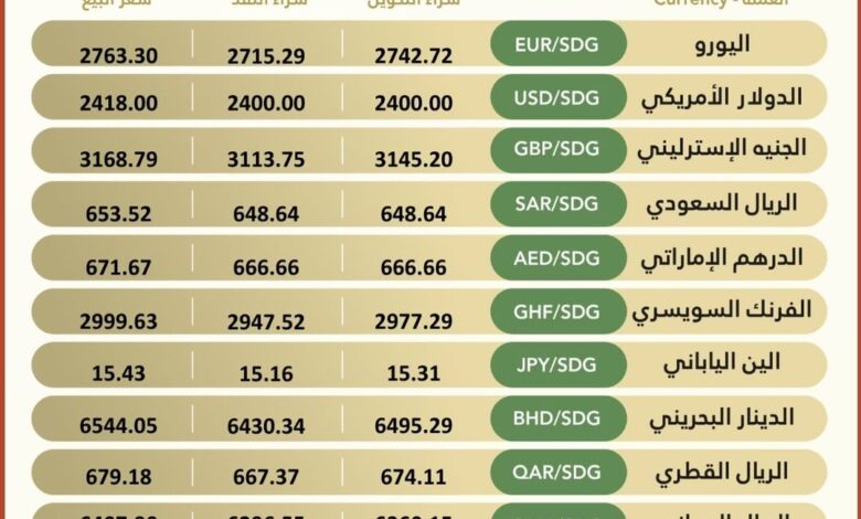 Currency #Exchange_Rates in Bank of Khartoum, On Wednesday, 10 December 2025