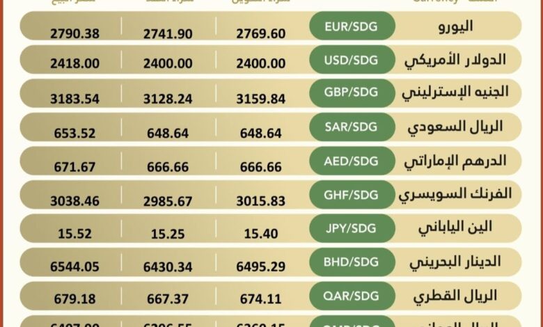 Currency #Exchange_Rates in Bank of Khartoum, On Saturday, 13 December 2025