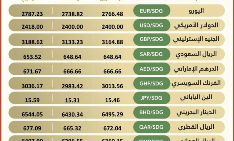 Currency #Exchange_Rates in Bank of Khartoum, On Wednesday, 17 December 2025