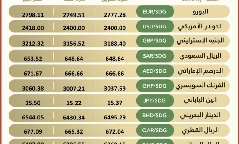 Currency #Exchange_Rates in Bank of Khartoum, On Tuesday, 23 December 2025