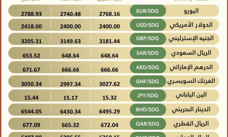 Currency #Exchange_Rates in Bank of Khartoum, On Wednesday, 31 December 2025