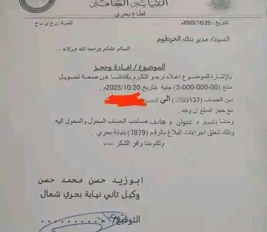 لو عندك مبـ.لغ او احتالـ.وا عليك لما تمشي البنك ما بديك اي معلومة ما لم تجيب امر من النيابة حتى لو نزل مبلغ في حسابك غلط عايز تعرف منو الرسلو ليك وطلبت من البنك ما بوريك منو رسلو الا تجيب ليهو بلاغ من النيابه