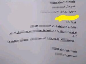 منذر دا حول المبلغ من حسابو لحساب محمد احمد اشترى منو بضاعة او شال كاش المهم هنا محمد احمد ما ليهو ذنب بس للاسف المبلغ دخل حسابو وحيتم حجز المبلغ بالمختصر