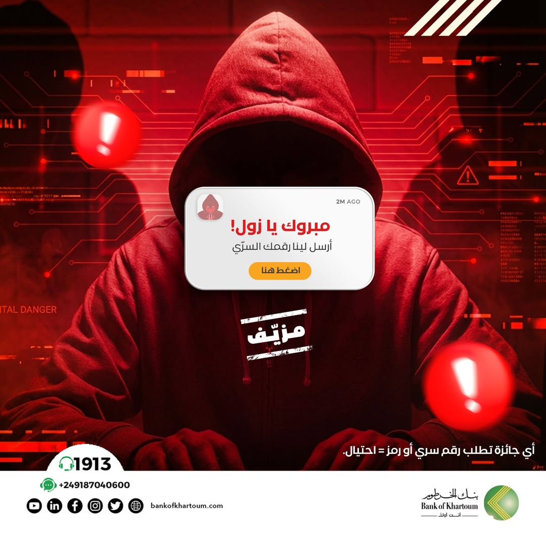 عند الشك، أوقف التواصل فورًا وتواصل عبر قنوات بنك الخرطوم الرسمية.