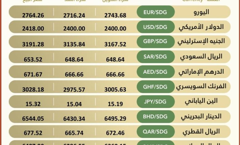 Currency #Exchange_Rates in Bank of Khartoum, On Monday, 19 January 2026