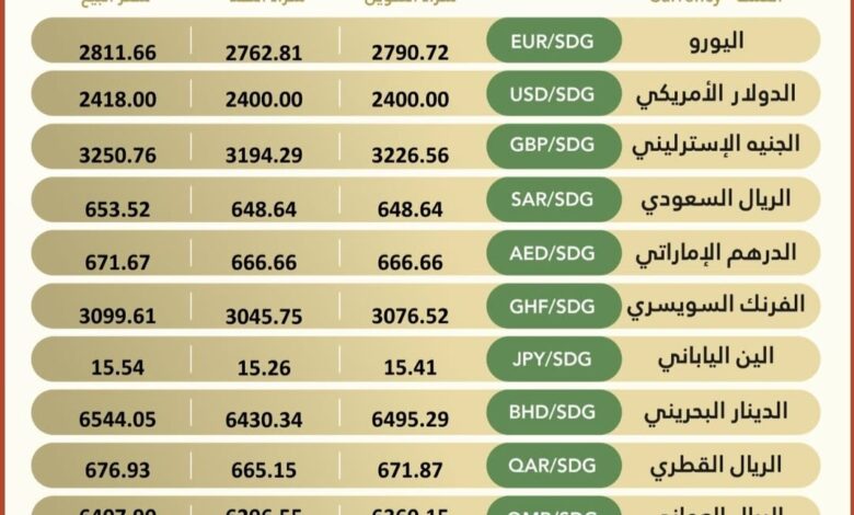 Currency #Exchange_Rates in Bank of Khartoum, On Sunday, 25 January 2026