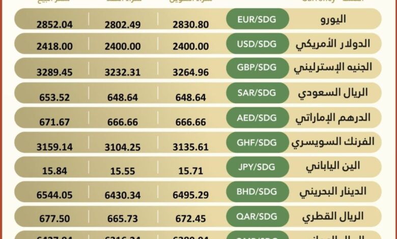 Currency #Exchange_Rates in Bank of Khartoum, On Wednesday, 28 January 2026