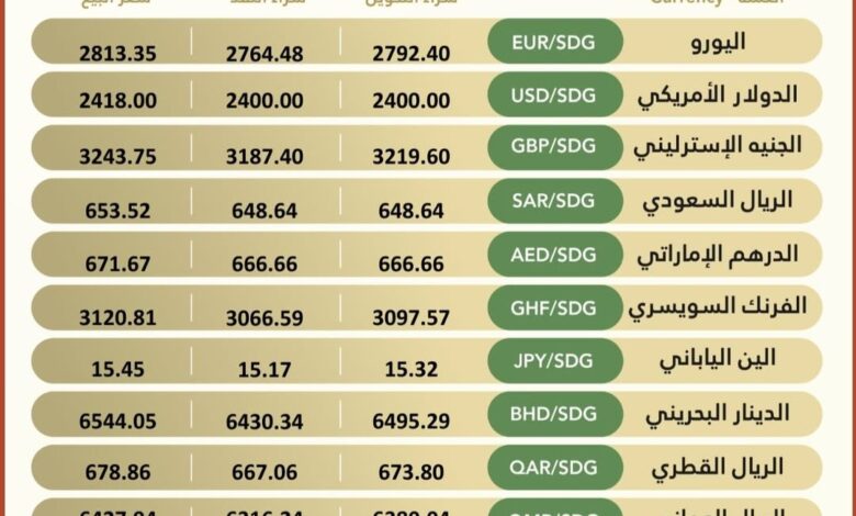 Currency #Exchange_Rates in Bank of Khartoum, On Monday, 9 February 2026