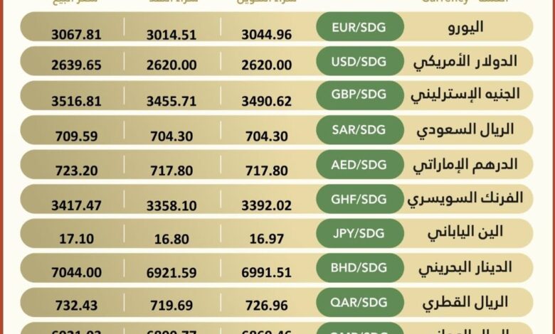 Currency #Exchange_Rates in Bank of Khartoum, On Monday, 23 February 2026
