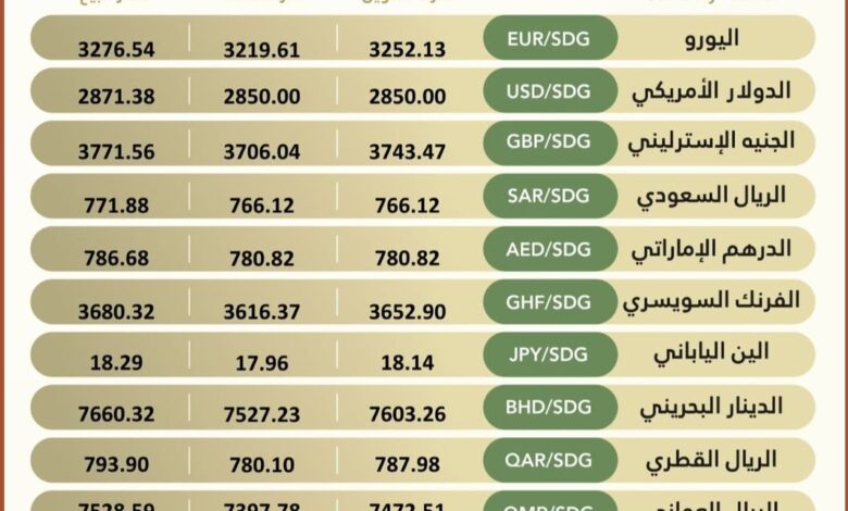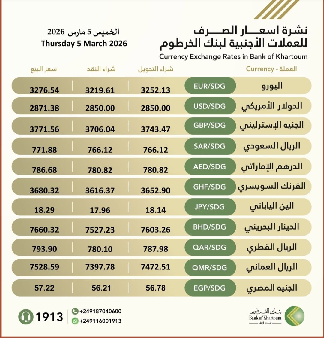 Currency #Exchange_Rates in Bank of Khartoum, On Thursday, 5 March 2026