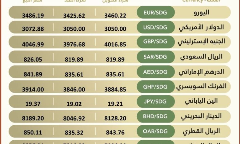 Currency #Exchange_Rates in Bank of Khartoum, On Wednesday, 18 March 2026