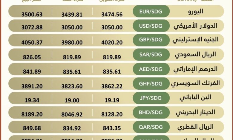 Currency #Exchange_Rates in Bank of Khartoum, On Wednesday, 25 March 2026