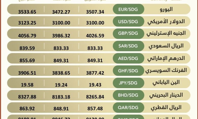نشرة #اسعار_صرف_العملات_الاجنبية في بنك الخرطوم ليوم السبت، الموافق 4 أبريل 2026م.