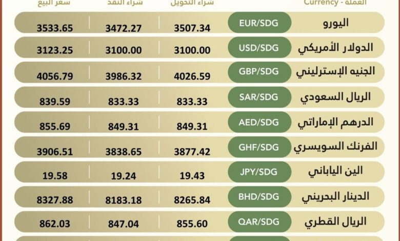 Currency ‎#Exchange_Rates in Bank of Khartoum, On Sunday, 5 April 2026