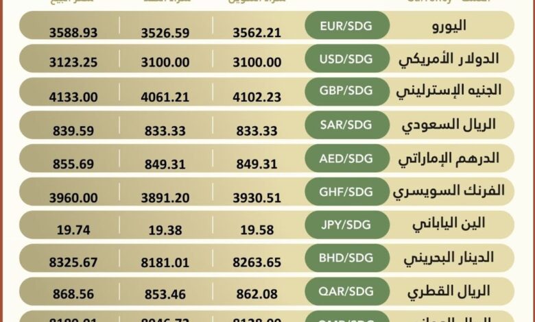نشرة #اسعار_صرف_العملات_الاجنبية في بنك الخرطوم ليوم الأربعاء، الموافق 8 أبريل 2026م.