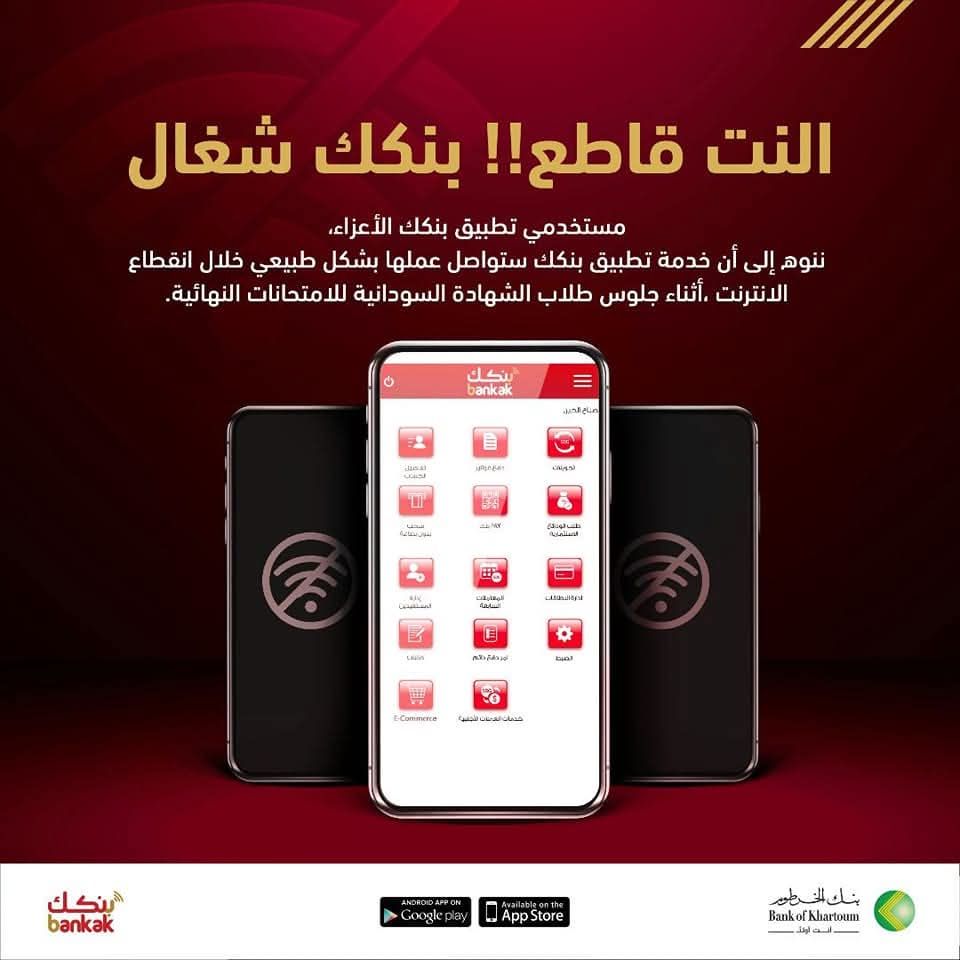 ننوه إلى أن خدمات التطبيق، ستواصل عملها بشكل طبيعي خلال انقطاع الإنترنت، أثناء جلوس طلاب الشهادة السودانية للامتحانات..