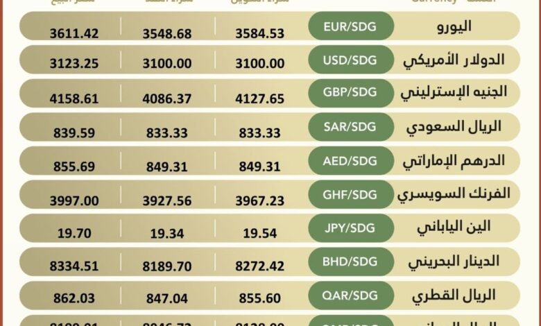 Currency ‎#Exchange_Rates in Bank of Khartoum, On Saturday, 18 April 2026