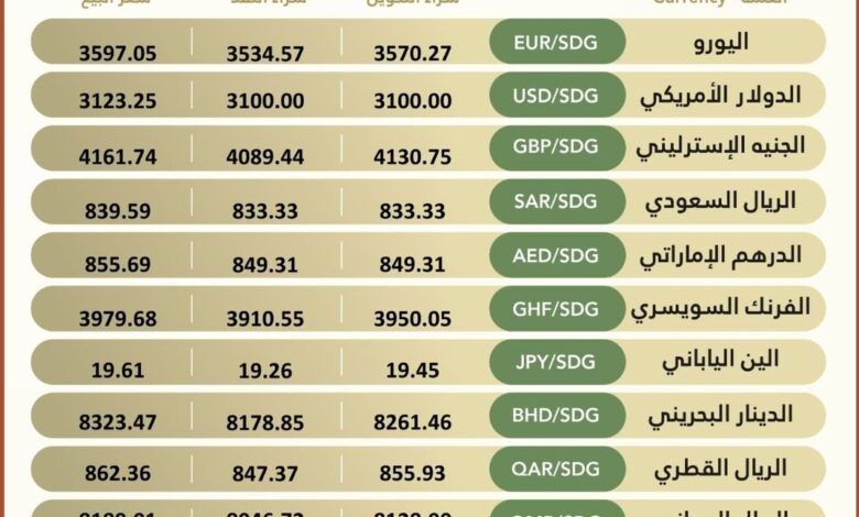 Currency ‎#Exchange_Rates in Bank of Khartoum, On Saturday, 25 April 2026